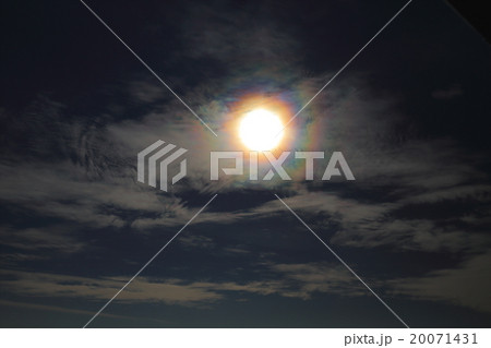 自然 風景 彩雲でしょうかそれとも日暈でしょうか。太陽をぐるりと取り囲んできます