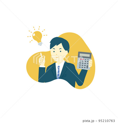 計算ばっちりな男性と電球アイコン /ビジネス/お金/家計簿