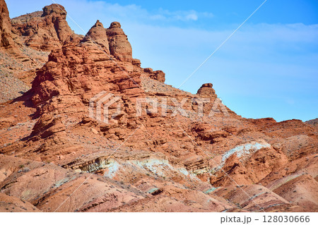 Rugged Red Rock Formations Against Blue Sky Nevada Eye-Level View
