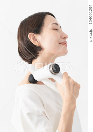 マッサージ機を使う女性 ライフスタイルイメージ