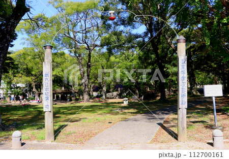 徳島県鳴門市に残る、板東俘虜収容所跡(ドイツ村公園):公園入口の門柱