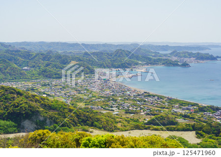 【千葉県安房郡鋸南町】鋸山からみた保田中央海岸・保田漁港方面の風景