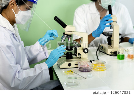 professional lab worker is preparing to wear gloves, showcasing focus and precision in laboratory setting. blue gloves highlight importance of safety and cleanliness in scientific work