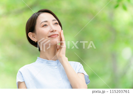 ミドル女性 ビューティー 緑