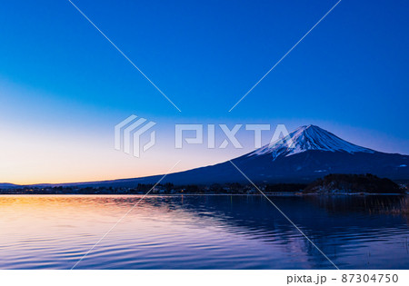 河口湖から眺める朝焼けの富士山 冬景