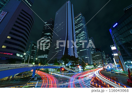 新宿の夜景と車の光跡
