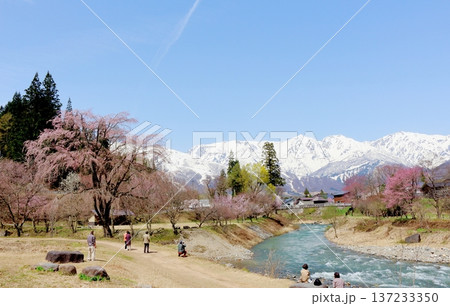 4月の白馬村 春の白馬村の風景 冠雪の北アルプス 信州の風景