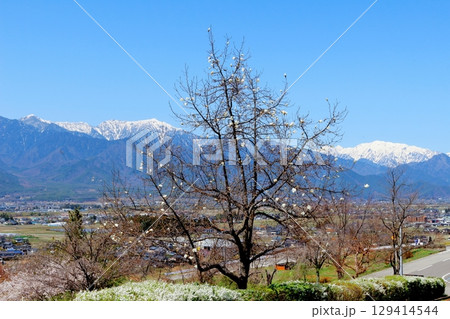4月の北アルプス展望美術館からの北アルプス 信州の山々 春の北アルプス