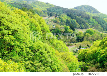 新緑の北杜地域 谷を彩る新緑 春の樹木 花と植物が織りなす色紙
