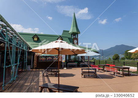 長野電鉄 湯田中駅の駅舎と志賀高原の山並み