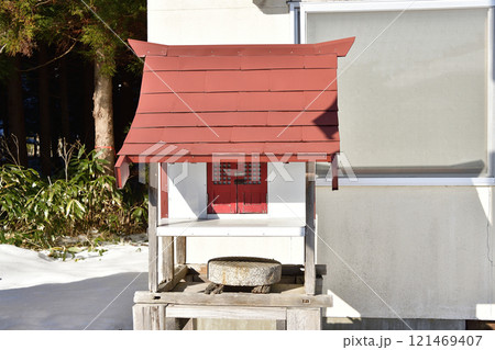 冬の北海道北斗市で開発猿田彦稲荷神社境内の風景を撮影
