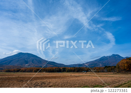 晩秋の黒姫山(信濃富士)と妙高山(越後富士)パノラマ