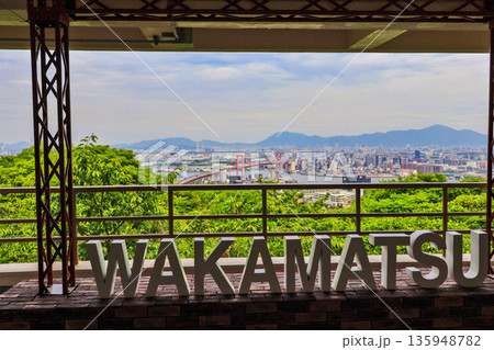 高塔山展望台から眺めるぼやけた若戸大橋 福岡県北九州市若松区修多羅