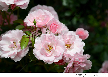 ガーデンのピンク色の修景バラの花