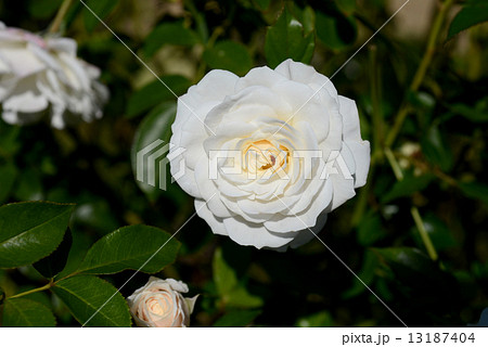 ローズガーデンの白い修景バラの花