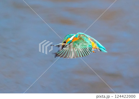 埼玉県川越市池辺 川越水上公園 修景池(ボート池)で獲物の小魚を狙ってホバリングするカワセミ