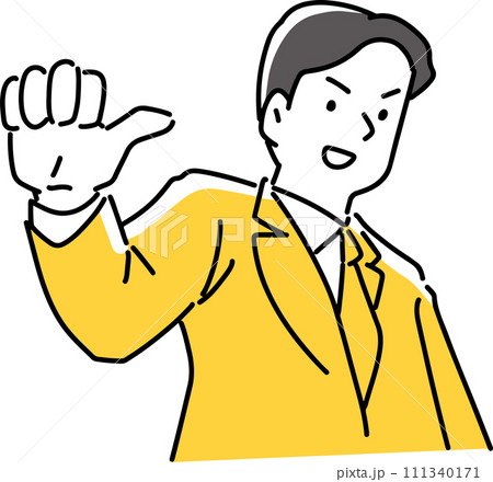 考える男性と説明するコンシェルジュセット シンプルでお洒落な線画イラスト