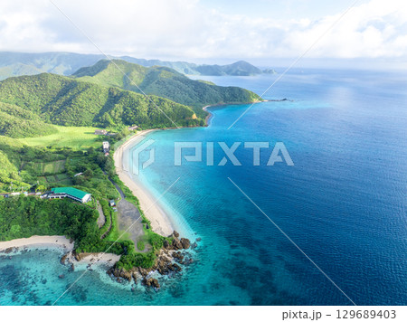 朝の奄美大島、芦徳のホテルから赤尾木方面を望む、鹿児島県