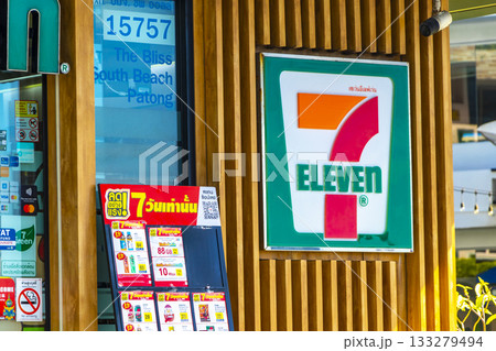7 Eleven store shop entrance welcome logo in Patong Thailand.