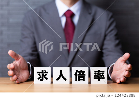 求人倍率のブロックとスーツを着たミドル男性ビジネスマン