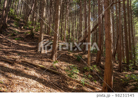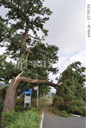 山林の倒木 折れた杉の木 台風被害イメージ写真素材
