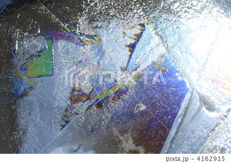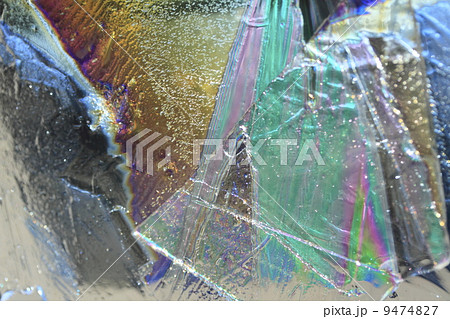 太陽光の薄氷を透した偏光プリズム効果による色彩
