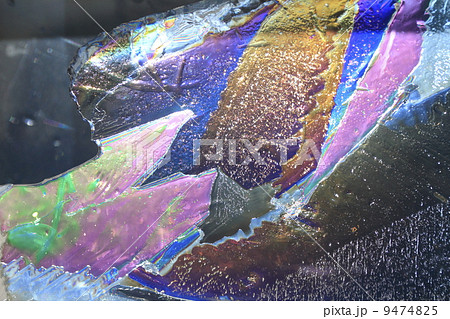 太陽光を薄氷りに偏光板(フィルター)を使い通して出来た色模様