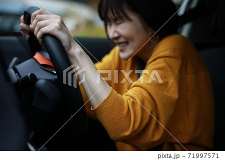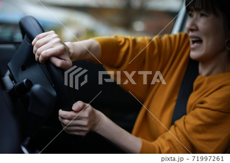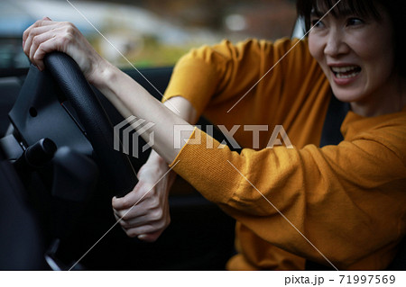 急ハンドルを切る女性