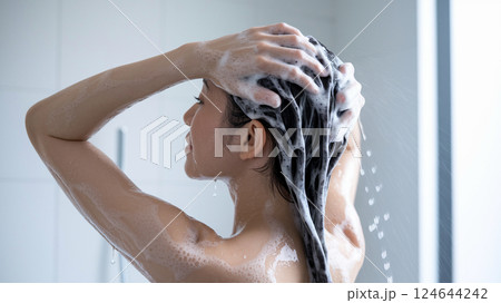 女性享受洗髮時刻,泡沫豐盈的頭皮按摩,放鬆舒適的個人護理體驗