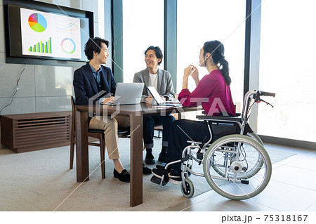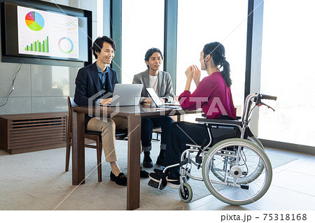 日本ユニバーサルマナー協会監修素材 障害者 車椅子 ビジネス 会議
