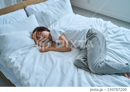 風邪で寝込む女性 体調不良 ダウン