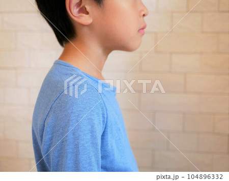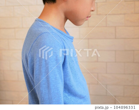 横から見た猫背で姿勢が悪い男の子