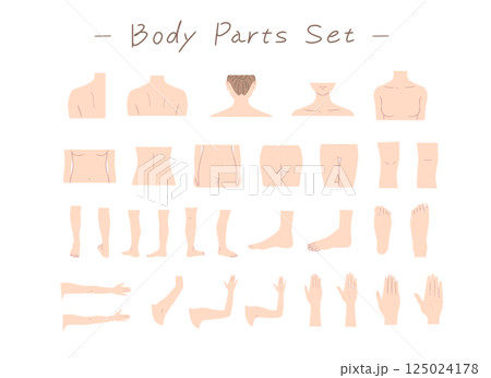腕を上げて脇をみせるポーズと立ち姿勢の裸の女性のイラストセット