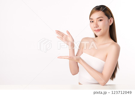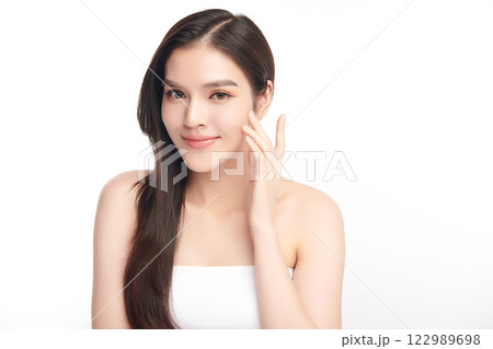 Beautiful young asian woman with clean fresh skin on white background, Face care, Facial treatment, Cosmetology, beauty and spa, Asian women portrait.
