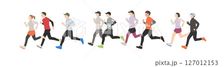 長袖ウェアのランナーグループ(秋冬・男女混合ジョギング)