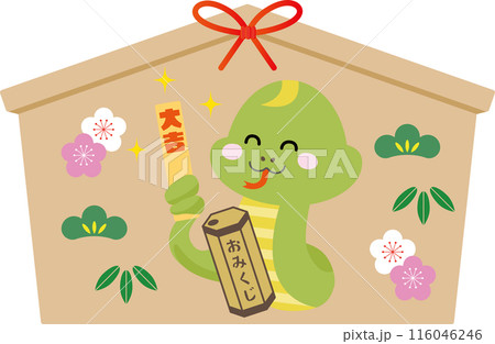 おみくじで大吉を引く笑顔のヘビが描いてある絵馬