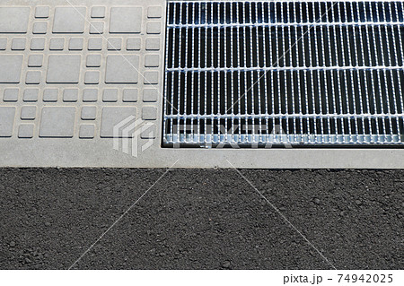 側溝のグレーチング蓋とコンクリート蓋と駐車場の車止め