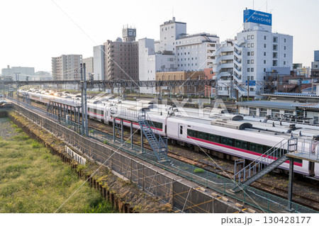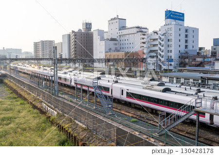 【いわき駅】早朝の留置線に停まる特急列車