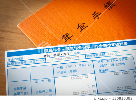 年金額改定通知書と年金手帳 老齢厚生年金 老齢基礎年金 遺族年金 障害年金