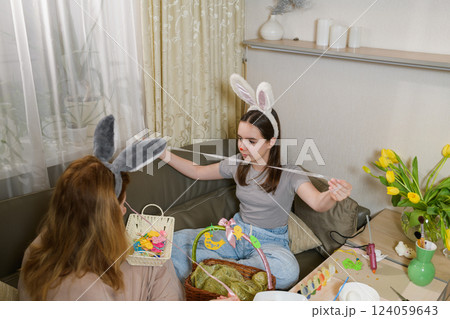 With cup of drinks, having a conversation. Mother and daughter is together at home