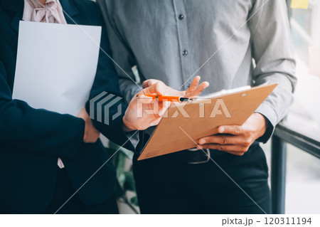 Fund managers team consultation and discuss about analysis Investment stock market at office