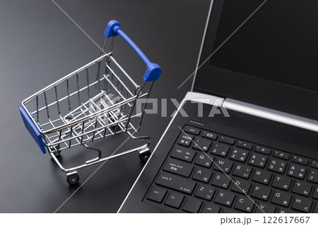 ノートパソコンとショッピングカート