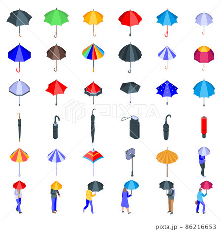 3d umbrellas icons. Render umbrellas cartoon icon, waterproof parasol rain weather protection insurance safe water shield travel or autumn meteo concept, exact vector illustration
