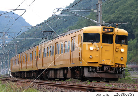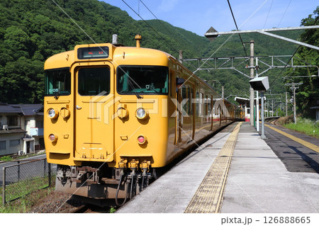 新見市井倉を通過する伯備線115系電車(ワンマン-2両編成)