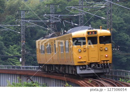 新見市井倉を通過する伯備線115系電車(ワンマン-2両編成)