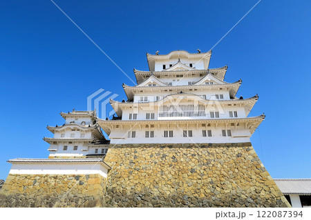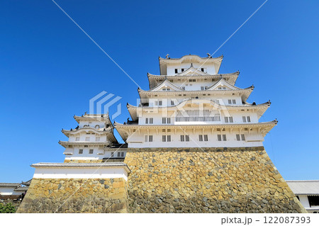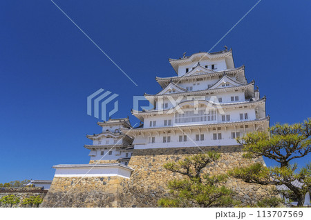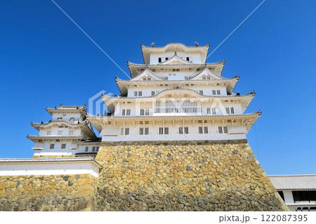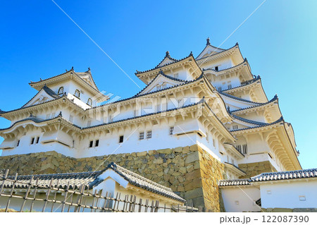 兵庫 姫路 晴天の青空と姫路城 大天守 備前丸跡より