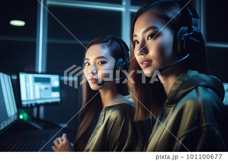 generative AI. Dynamic Women Engaging in Podcast Conversation