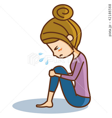 頭を抱えて泣いている女性のイラスト