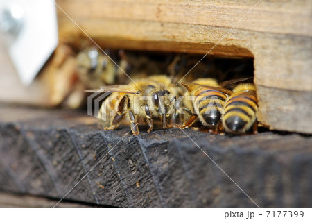 養蜂イメージ 巣箱を出入りするミツバチ