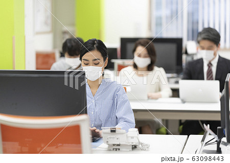 マスクをして働くオフィスワーカー